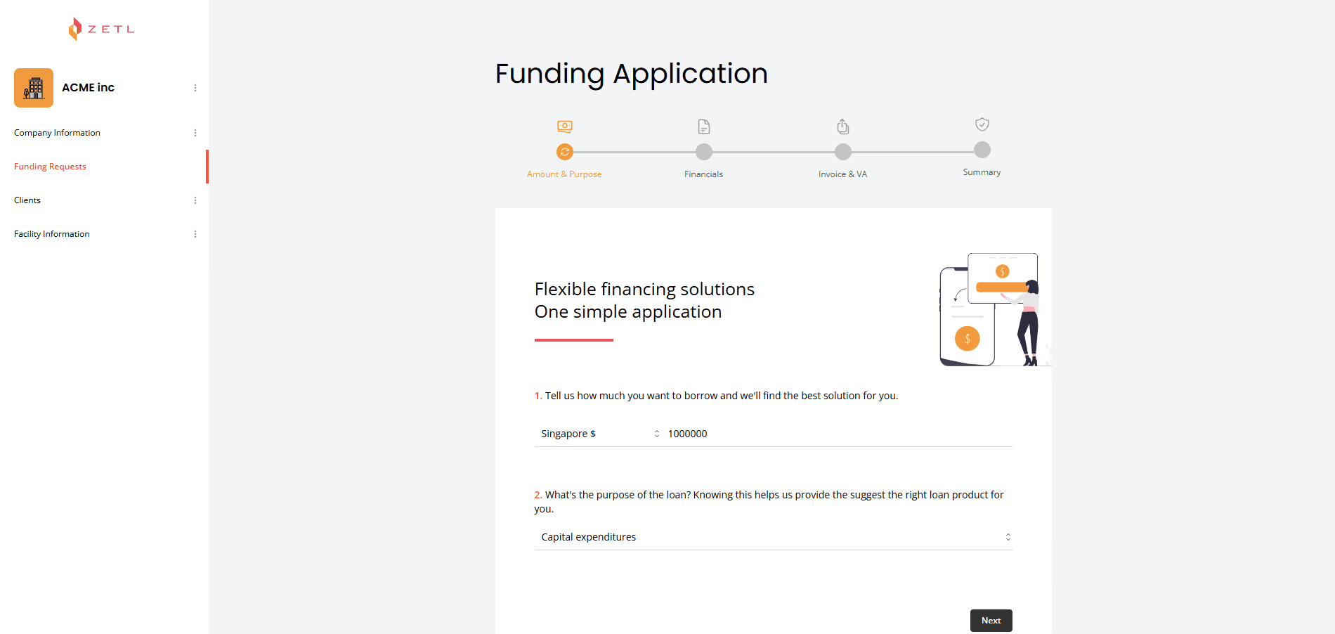 Tell us how much you financing you require.